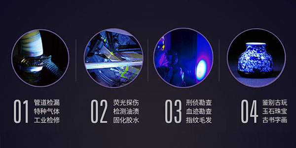 產品專業性強,廣泛應用于熒光檢測、殺菌消毒、文物鑒定、刑偵檢測等行業